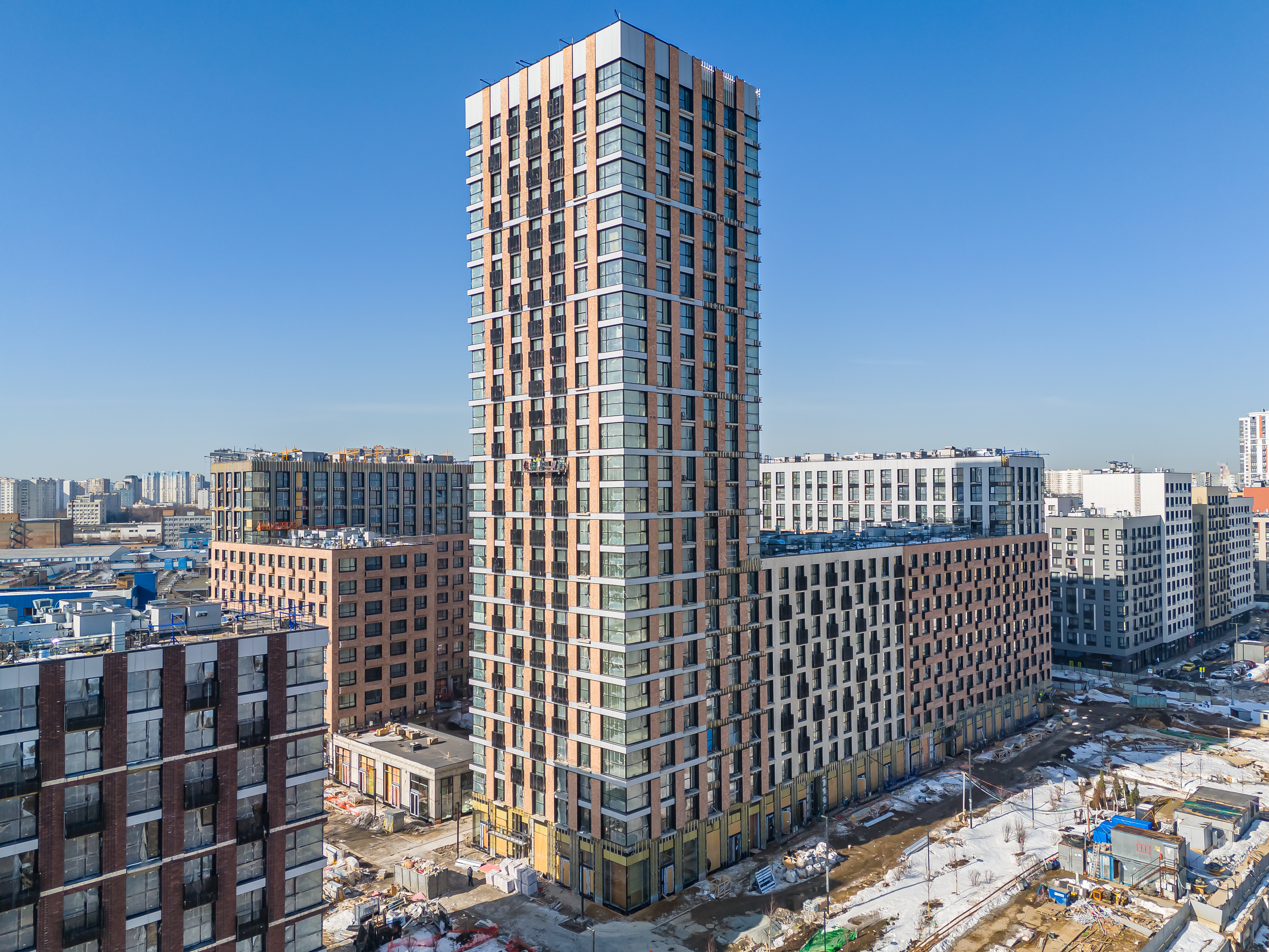 В двух корпусах четвертой очереди жилого квартала LIFE Варшавская остеклили первые этажи и начали монтировать декоративную плитку. Также продолжаются работы по установке балконов, корзин для кондиционеров и других фасадных элементов.